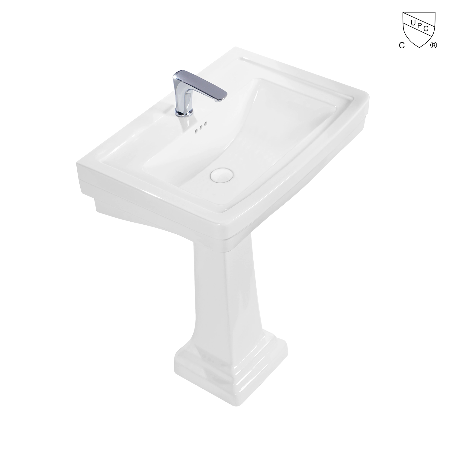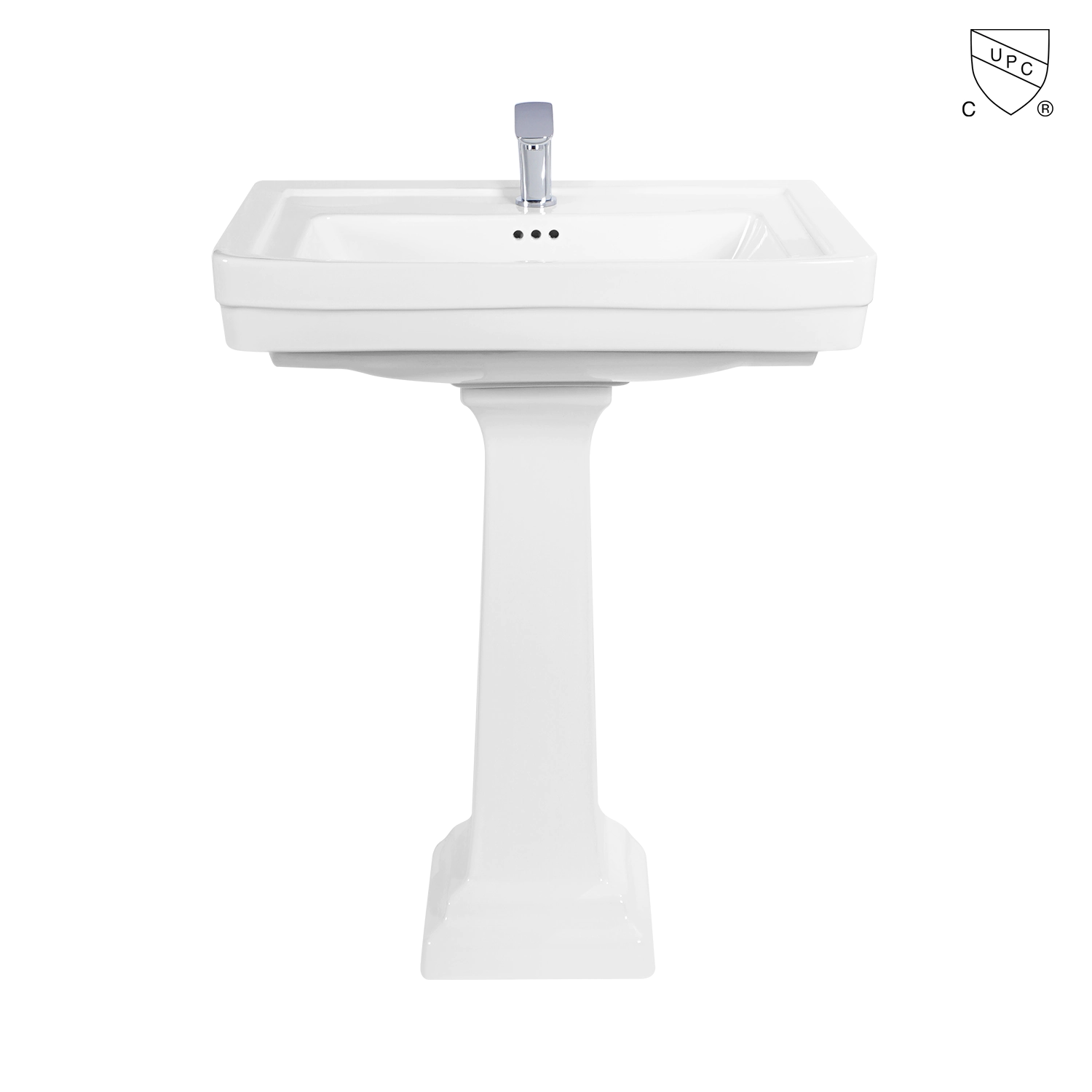 UPC 30 inches large rectangle pedestal bathroom sink in 38 inches height with overflow, Ceramic 77 cm lavatory freestanding pedestal wash basin