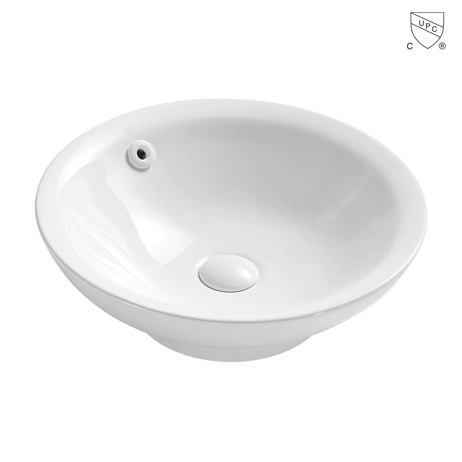 Bathroom white CUPC certified round shape countertop vitreous china ceramic vessel sink grade-A art basin with overflow drop-in sink