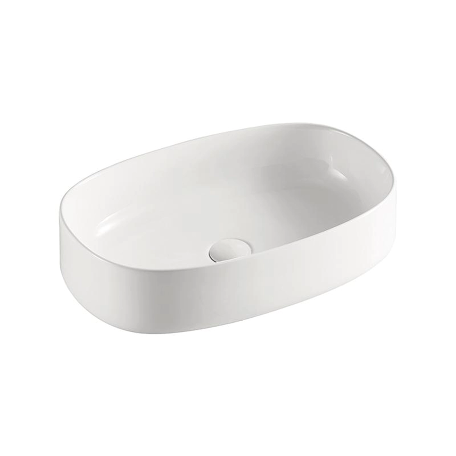 21-inch Vessel Sink Ceramic Oval Vessel Bathroom Sink 54 cm Art Basin Pure White Porcelain Vanity Lavatory Cabinet Countertop Above Counter wash Basin