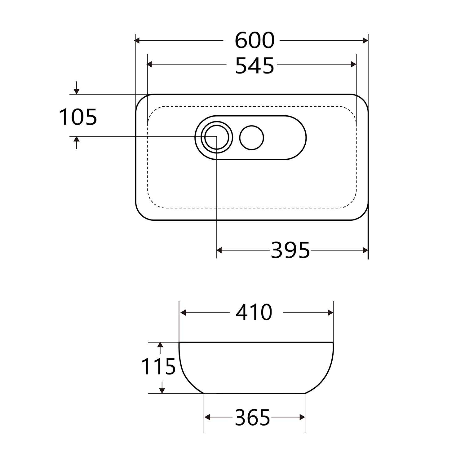 Bathroom round-corner Rectangle Vanity countertop Ceramic Porcelain White Table Top Vessel Sink side drain Washing Basin with levitated drain