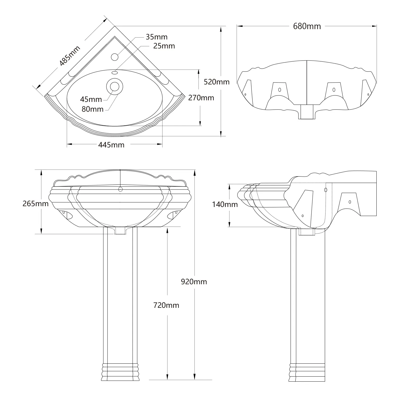 这款白色陶瓷角座水槽专为角落而设计,设计紧凑,可让您最大限度地利用浴室空间。水槽的传统和经典外观让您的浴室空间特别而美丽。预先钻好的溢流孔可以阻止水离开碗,高大的装饰后挡板可以保护您的墙壁免受水损坏。搭配您最喜欢的中心套装水龙头以完成外观。