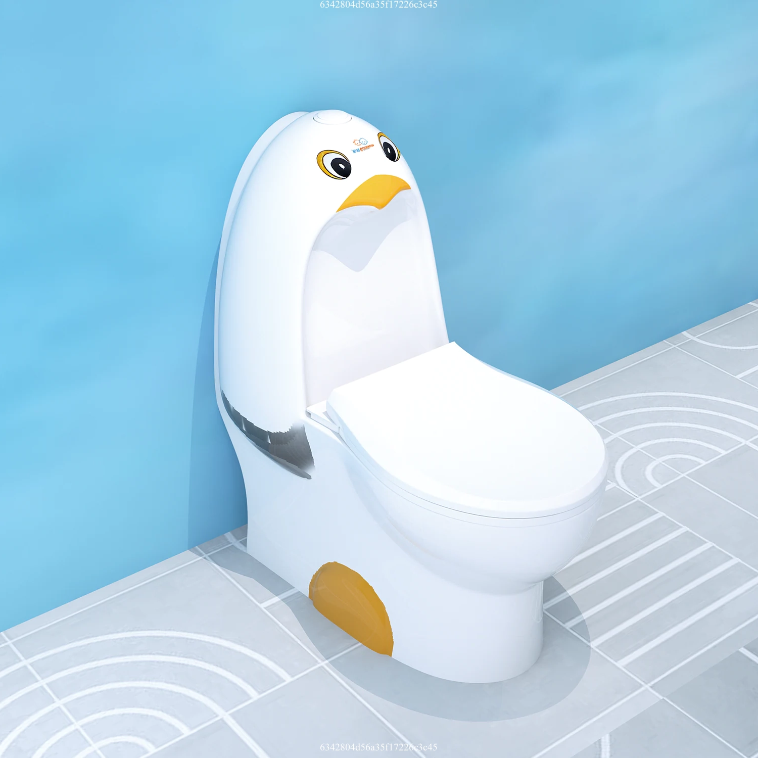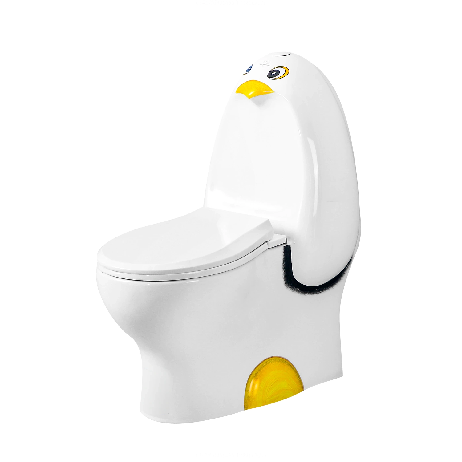 优质儿童卫生洁具彩色企鹅造型迷你背靠墙式坐便器,直冲式儿童连体马桶
