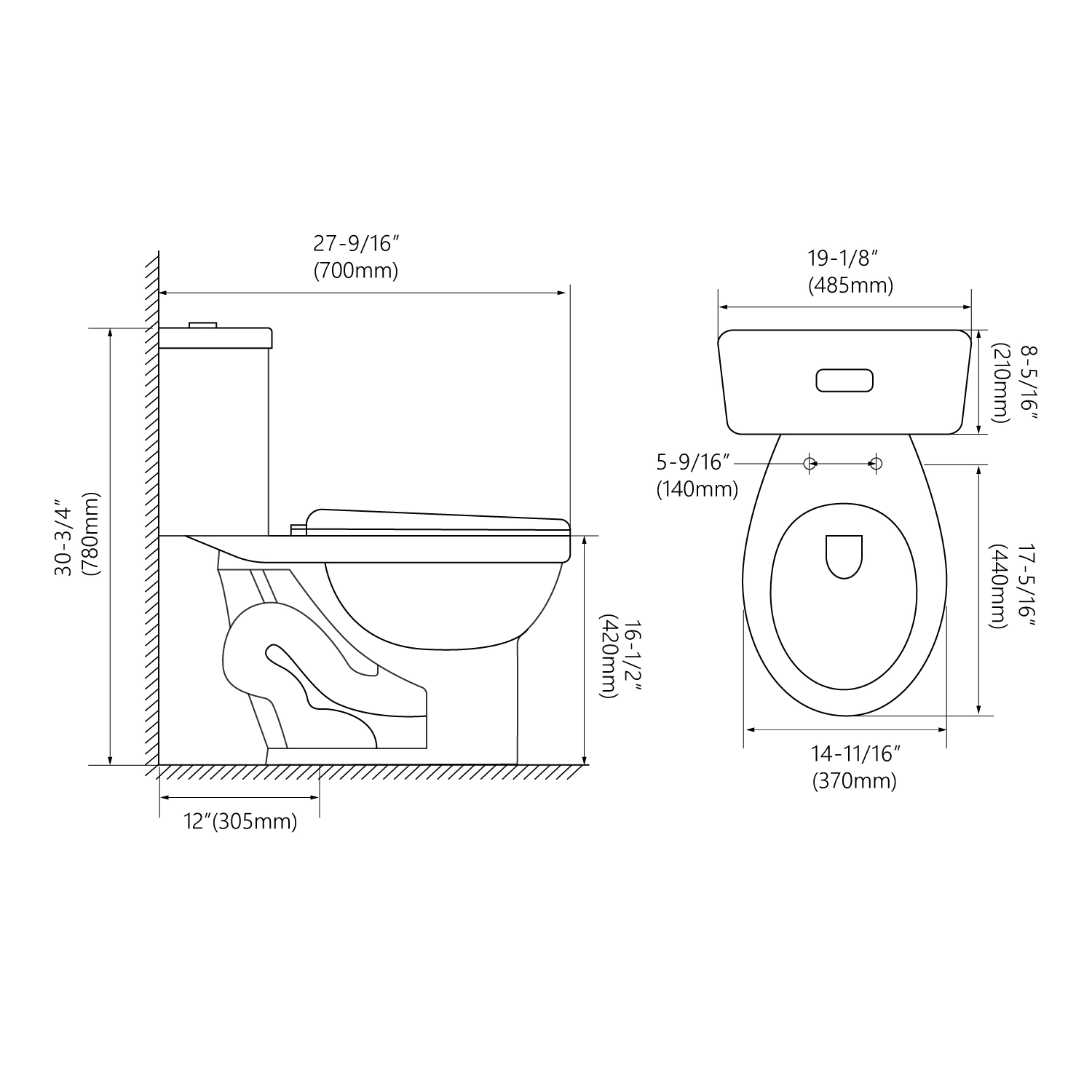 - Flush Button :Side Dual Flush Top Single Flush