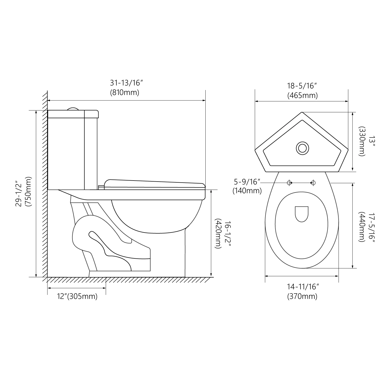 Bathroom 1.08 GPF ADA Compliant CUPC certified comfort height s-trap siphonic round bowl white vitreous china ceramic corner two piece toilet 12 inches / 305 mm rough-in toilet seat included