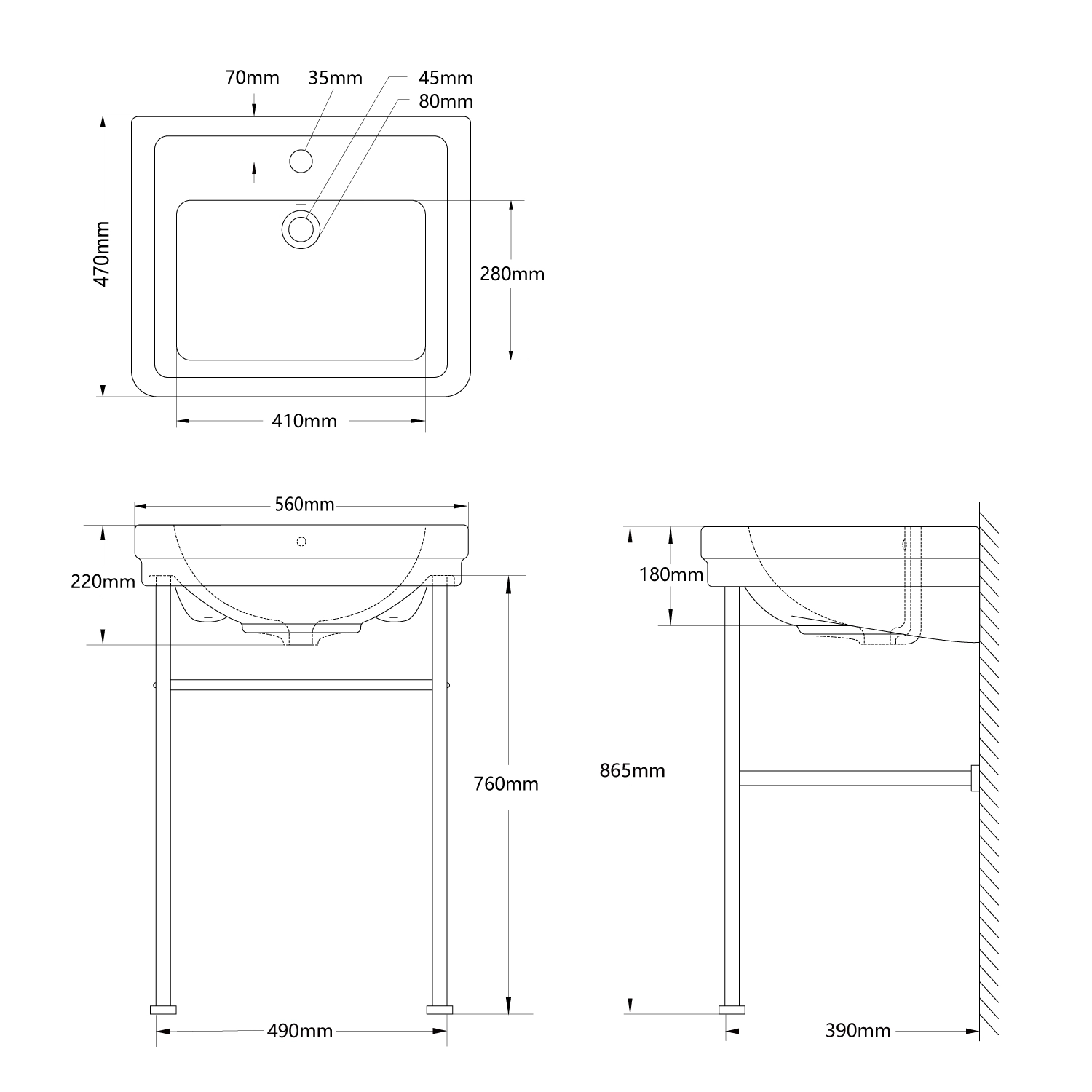 Small rectangle Bathroom 56 cm ceramic lavatory freestanding wash basin 22 inches CUPC certified console sink with metal console stand and glassy white basin